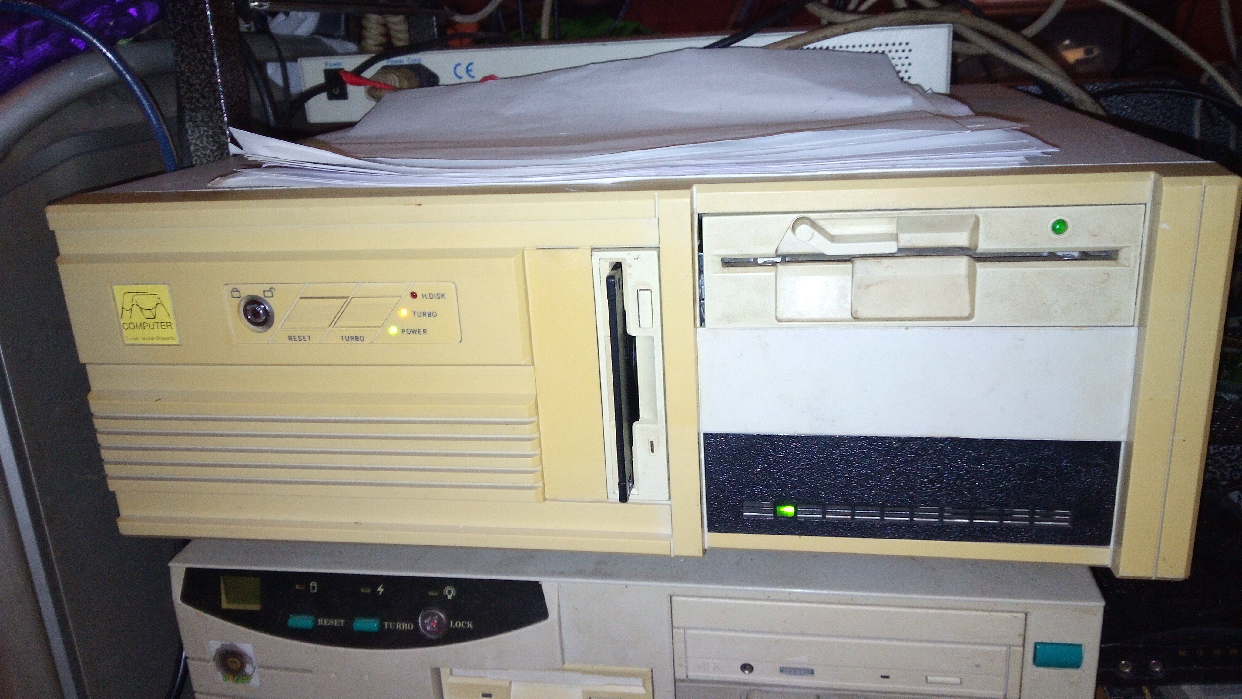 Tawnia's old appearance. This case always seemed too modern. We shall inevitably see this chassis again some day, as there's nothing wrong with it and certainly no reason it couldn't house something else, say a 486. The larger hard drive developed faults long ago and will be used in my shed, in another machine, until it fails completely. |